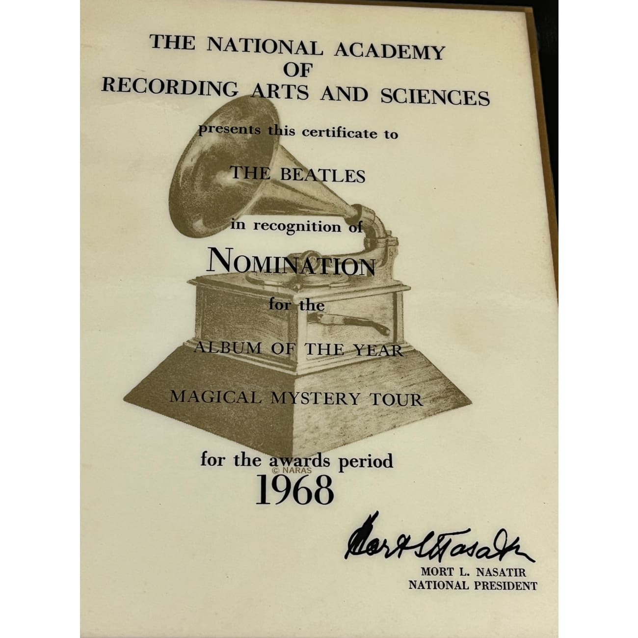 - Official Grammy Award Album Of The Year Nomination plaque from 1968 for the Beatles Magical Mystery Tour